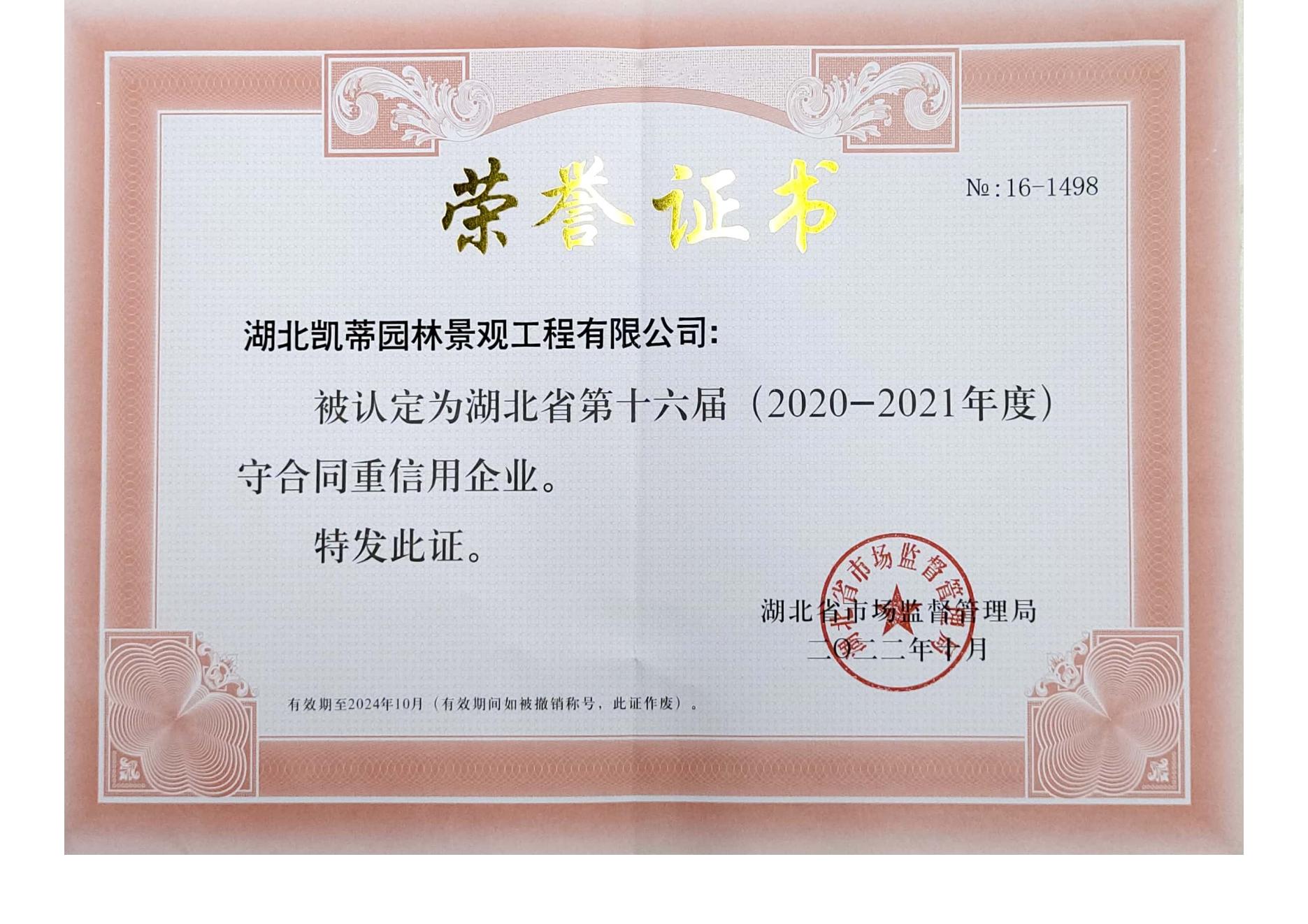 湖北省守合同重信用企業